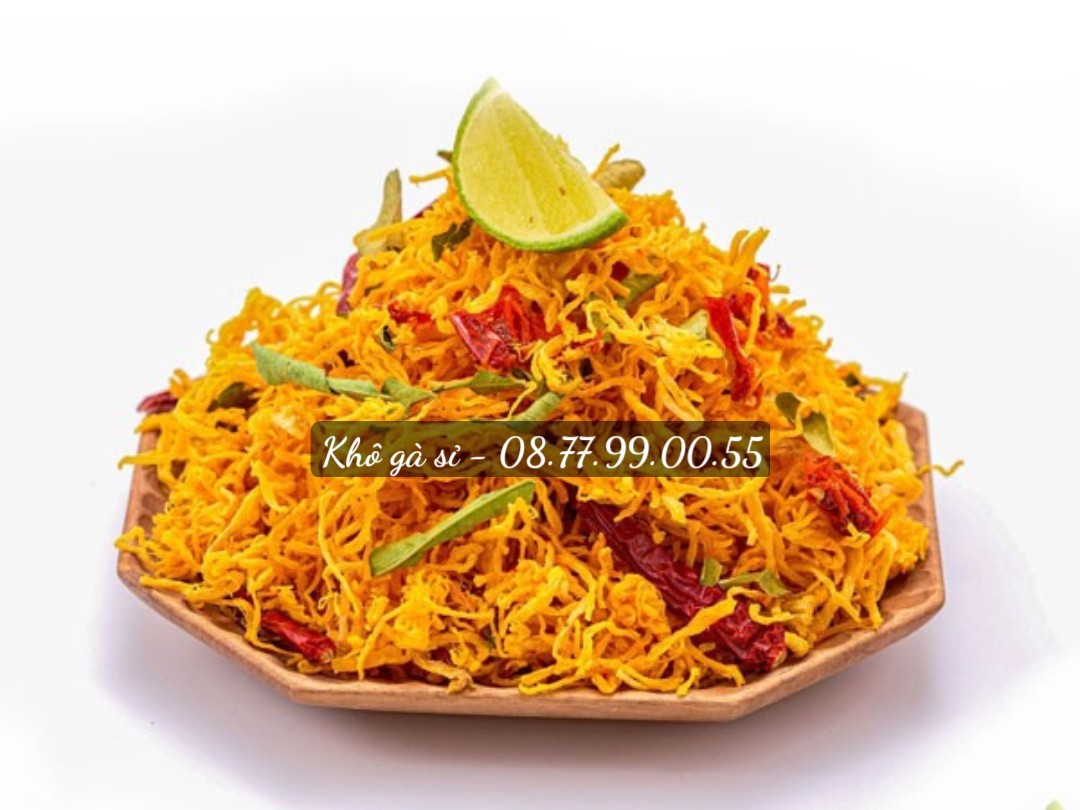 Khô gà là món ăn vặt được yêu thích bởi mọi lứa tuổi bởi hương vị thơm ngon, đậm đà và giá trị dinh dưỡng cao. Món ăn này được chế biến từ thịt gà tươi, tẩm ướp gia vị và sấy khô. Khô gà có thể sử dụng trực tiếp hoặc chế biến thành nhiều món ăn khác nhau như gỏi cuốn, salad, bánh tráng trộn,…